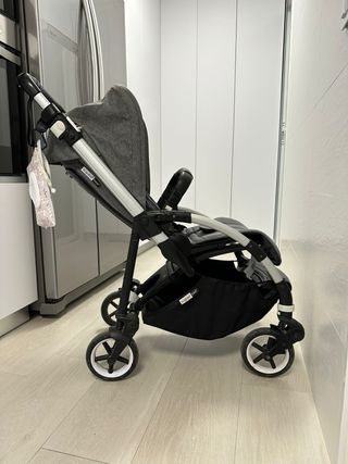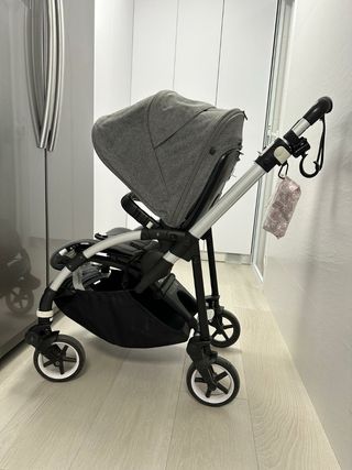 Bugaboo Bee 5 en color gris, en buenas condiciones. - Tejido gris melange. - Capota extensible. - Arnés de seguridad de 5 puntos. - Incluye barra delantera.