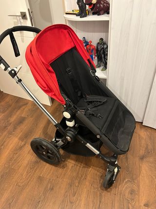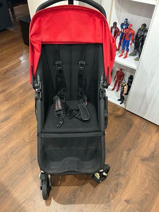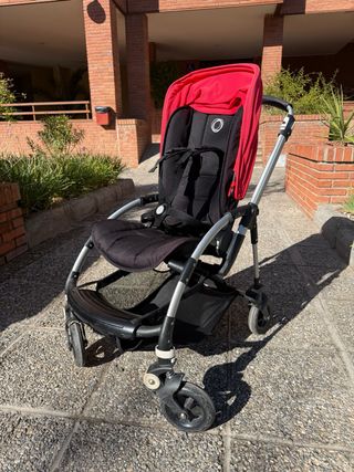 Silla de paseo Bugaboo en color rojo y negro. Ideal para el día a día. - Capota extensible en color rojo. - Chasis metálico. - Ruedas todoterreno.