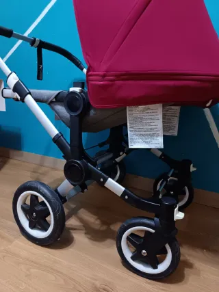 Carro Bugaboo Buffalo en color rosa y negro. Ideal para paseos cómodos. - Capota extensible en color rosa. - Chasis y asiento en color negro. - Barra de seguridad. - Arnés de seguridad de 5 puntos. - Capazo de bebe con cubrepies - Plástico lluvia Adicionalmente tengo la capota de verano en rosa y capota beige y también transportín para otro niño de la marca Bugaboo por 80€ más.