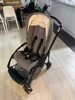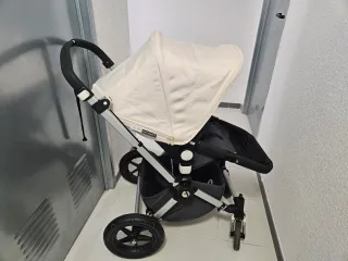 Silla de paseo Bugaboo Camaleón en color beige. Buen estado, solo silla, no incluye capazo. - Chasis metálico. - Asiento acolchado. - Capota extensible. - Ruedas todoterreno. - Incluye cubierta lluvia - Incluye mosquitera.
