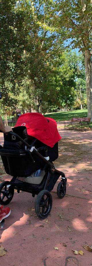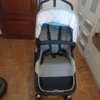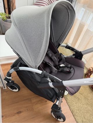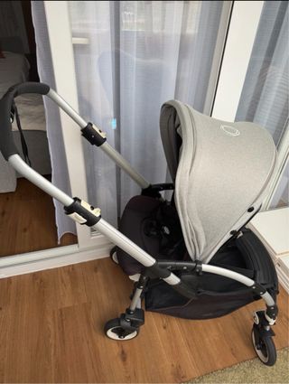 Carrito Bugaboo Bee3 en color gris y rojo super manejable y ligero. La vida de los padres es ya lo bastante dura como para que el carrito no vaya fino: este se lleva con una mano sin esfuerzo. Rodamientos revisados y lubricados, rueda muy bien. La silla se rompió en un lateral, está arreglada, por eso se incluye de regalo. Regalo también burbuja para la lluvia y bolso universal que se engancha al manillar. - Chasis ligero y maniobrable. - Asiento acolchado y reclinable. - Capota extensible para mayor protección solar. - Cesta de compras espaciosa A recoger en zona Francos Rodríguez. Saludos.