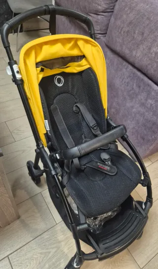 Cochecito Bugaboo Bee 5 en color amarillo, prácticamente nuevo. - Chasis negro. - Capota extensible. - Ruedas todoterreno. - Con capota de lluvia