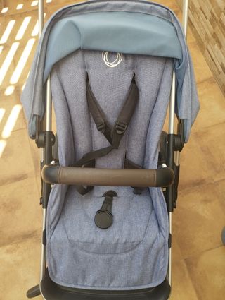 Vendo carrito de bebé Bugaboo Fox usado, en buen estado. Es ligero y fácil de manejar. - Color azul. - Tejido de punto. - Capota extensible. - Incluye barra de seguridad. La barra de piel del manillar desgastada pero se puede cambiar.