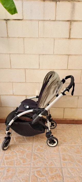 Silla de paseo Bugaboo Bee 3. - Chasis plateado. - Asiento negro. Siempre ha estado protegido por colchoneta, solo esta un poco descolorido en los extremos. - Se pliega completamente para guardarlo comodamente en el maletero. - Super cómodo para conducir con una sola mano. - Se tumba por completo para descanso del niño. - Manillar extensible en distintas alturas. - Arnes de seguridad de 5 puntos. - La capota se vende a parte. 20€. Tiene uso pero funciona perfectamente. El unico desperfecto es una almohadilla un poco rajada como se ve en la foto y el chasis un poco rallado del uso.