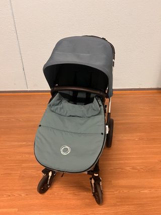 Carro Bugaboo en color verde y negro. - Chasis de aluminio. - Capota extensible. - Asiento reversible. - Ruedas todoterreno.