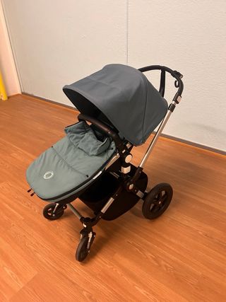 bugaboo camaleon 3 en gris melange con interior acolchado en color beig. Capota extensible, mosquitera para el cuco y cubre lluvia en perfecto estado. Cubrepie extra en color beig para el cuco.