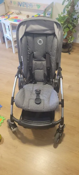 Carrito Bugaboo Bee 5 en color gris. Un cochecito ligero y compacto, perfecto para la ciudad. Chasis de aluminio, Capota extensible, Cesta de compras, Ruedas todoterreno, Burbuja impermeable original. Valorada en 60 euros.