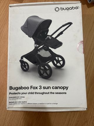 Capota Bugaboo Dragonfly en color gris, nueva. - Protección solar extensible. - Fácil de colocar y quitar. - Tejido suave y de calidad.