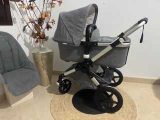 Carrito de bebé Bugaboo Fox en color gris, con un diseño moderno y funcional. Buen estado. Se nota actualmenteel desgaste en la piel del manillar (se puede cambiar). - Chasis ligero y resistente. - Manillar extensible. - facilísimo de manajear en todo tipo de terrenos. Ruedas todoterreno. - Incluye CAPAZO del mismo color, con su colchoneta y funda de la misma. - Incluye capota extensible VENTILADA gris (se vende aparte normalmente). - Incluye capota extensible beige. - Cesta de compras espaciosa, con bolsillo interior (aguanta 10kg). - Incluye Funda con 2 caras: invierno y verano (se vende aparte normalmente). - burbuja de lluvia