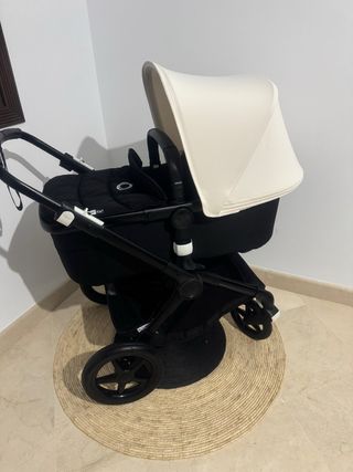 Bugaboo Fox 2 , compuesto por : Chasis negro ( leves señales de uso ) 1 capazo 1 silla Fundas de manillar y barra nuevos a estrenar Capota extensible color fresh white ( blanco fresco ) cesta inferior Plástico de lluvia Es un carro reacondicionado se entrega limpio 🧼 e higienizado