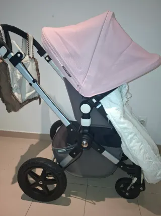 Cochecito muy bueno en buenas condiciones . Costo más de 1000 euros. Incluye capazo y luego sillita. De fácil plegado. Es el modelo de Fox con los frenos que no se ven. Gris melangue y capotas rojas de verano e invierno que es unisex. Se incluyen tb 2 sacos, una mantita y bolsa marca Bugaboo. Las ruedas aún están muy bien. Lo único que habría que cambiar las empuñaduras ya que la polipiel se gasto