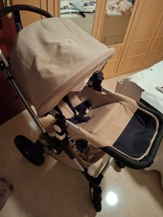 Cochecito Bugaboo Cameleon 3 2018 - Capota extensible. - Asiento reversible. - Arnés de seguridad de 5 puntos. - Ruedas todoterreno. Cochecito usado normal pero en muy buen estado y cuidado lo único q tiene es la piel del mango degastada, como se puede ver en las fotos, por lo demás no tiene ningún problema, incluyo la funda de la foto, es de color beige también perfecta. La vendo por noo usarla y falta de espacio