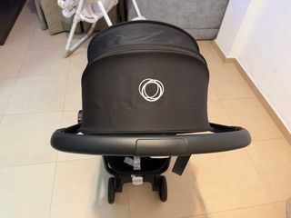 Capazo + silla de paseo Bugaboo Fox 2 en color negro, con capota blanco roto. La cesta de compras es nueva, casi sin usar. El carro está en muy buen estado. Solamente el manillar y el asa están algo desgastados, por lo que le compramos un protector para cubrirlo. Se incluye las vestiduras para el capazo. - Capazo amplio y cómodo. - Capota extensible. - Manillar ajustable. - Cesta de compras. - Ruedas todoterreno.