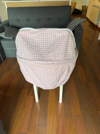 Se vende capota artesanal extensible para Bugaboo Bee 5. Exteriormente es de piqué rosa maquillaje con volantito y por el interior es blanca con estrellitas rosas. Está impecable.