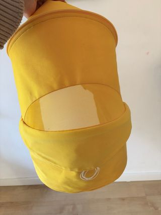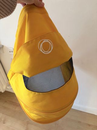 Color amarillo muy buen estado Tiene alguna mancha en la parte de las varillas pero no se nota apenas, puedes verlo en las fotos Capota extensible y ventilada para Bugaboo Bee 6. Protege del sol y permite la circulación del aire. - Color amarillo. - Con zona de malla para ventilación. - Cierre con cremallera.