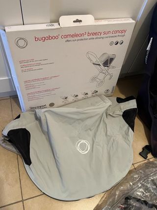 Capota para silla Bugaboo Fox y Cameleon en color gris. Está en perfecto estado. - Protege del sol a tu pequeñ@ durante todo el año. - Fácil de poner y quitar. - Material de alta calidad. se puede ver son compromiso. con caja original.
