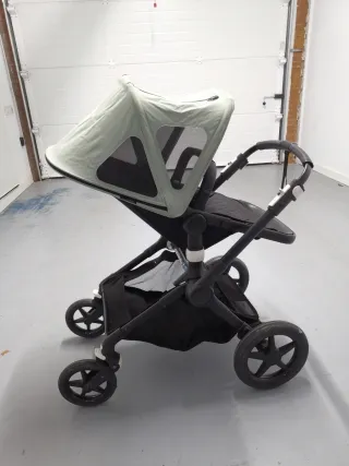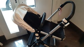 Bugaboo fox 2 en muy buen estado. Contiene capazo, silla y chasis. Utilizado menos de un año. Color negro; chasis negro y llantas blancas. capota beige de regalo.