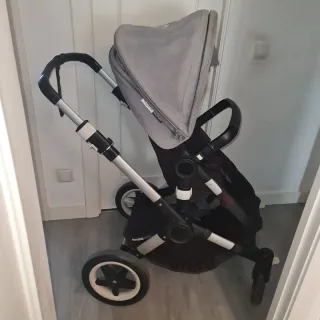 Carro Bugaboo en color gris, ideal para paseos. - Cuco - silla con Asiento reclinable. - Cesta de compras. - Ruedas todoterreno. -barra delantera Se vende con el cuco +silla+chasis y barra delantera. Opcional se vende aparte capotas, Todo de la marca original. Más accesorios en mi perfil.