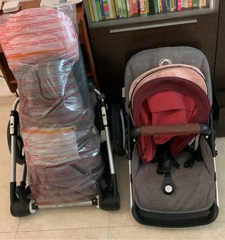 Preciosa silla de paseo Bugaboo Fox en color rosa y gris. Está en muy buen estado y lista para usar. - Capota rosa y tb gris - Tejido gris en perfecto estado. - Incluye la silla de paseo y el capazo con las cajas de origen - se incluye capota de lluvia - fundas bcn opcionales