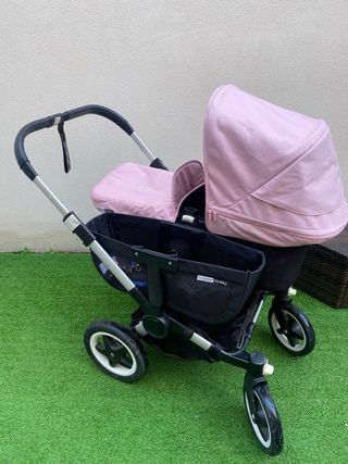 Se venden dos capazos y dos sillas para Bugaboo Donkey 2 gemelar. Está en buen estado con desperfectos de uso. - 2 capazos. - 2 sillas. - 2 capotas y cubre capazo beige (capota muy usada. - 2 capotas y colchón rosa (muy buen estado) - Complementos como adaptados para capazos, bolsa del carro, 2 fundas de lluvia, guantes de carro para el frio