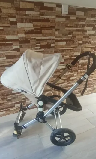 Carro de bebé Bugaboo Cameleon en color beige. Ideal para paseos cómodos. - Capota extensible. - Cesta de almacenamiento. - Ruedas todoterreno. Tengo otra silla y otra capota para este carro pero de color azul. Todo en total serian 160. Si no quieres la silla extra y la capota son 80 el carro. No hago envíos.