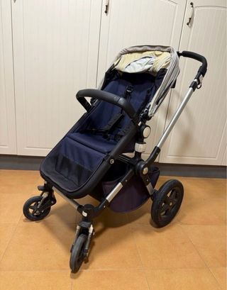 Carro de bebé Bugaboo en color beige y negro. - Capazo con colchoneta. - Capota extensible. - Manillar ajustable. - saco , paraguas . Funda para el verano no sude. Protector de agua y silla de bugaboo todo lo univo que tiene desgastado es el manillar se ve foto lo demas esta perfecto