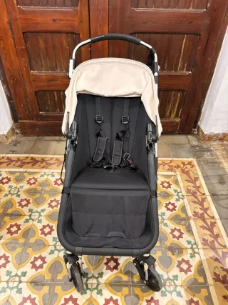 Carrito Bugaboo Bee 5 en color negro y beige. Incluye los siguientes accesorios. Se podría negociar vender cosas por separado si no te interesan todos los accesorios. - Silla de paseo negra (la estructura de la silla está casi sin usar, pues la otra se me rompió. También reemplacé el mecanismo de subir y bajar el manillar, que parece estropearse con el uso). La capota negra presenta desgaste. - Capazo negro, prácticamente nuevo. - Funda de asiento acolchada beige de verano. - Capota beige de verano - Plástico de lluvia. - Patinete con asiento en muy buenas condiciones - Saco de invierno gris en muy buenas condiciones - Bolso