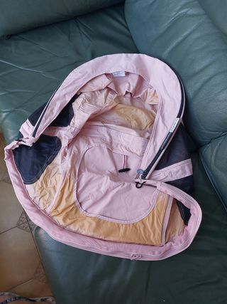 en perfectas condiciones, tiene tambien el capazo que se tiene que montar,y diferentes capotas de verano y invierno de color rosa