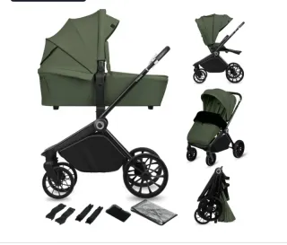 Conjunto de cochecito Kinderkraft Duo que incluye capazo y silla de paseo. El capazo no tiene colchoneta y el manillar esta un pelín torcido porque se partió una pieza recién comprado pero funciona a la perfección sin riesgo de accidentes. Se compró hace 8 meses nuevo, se cambia por necesidad de carro gemelar pero el carro está en perfectas condiciones, bien cuidado y es super grande, tanto la silla de paseo como el capazo. La silla de paseo se tumba del todo y se incorpora del todo y la capota cubre en si totalidad pada favorecer el descanso. - Hasta 22 kilos. - Color verde. - Incluye arnés de seguridad de cinco puntos.