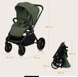 ¡El artículo ha tenido uso particular! LIONELO MIKA PLUS 2 en 1 Cochecito de bebé 0-48 meses hasta 22 kg Capazo hasta 9 kg, Ajuste de Respaldo y Reposapiés, Suspensión, AiryDots, Ruedas de PU giratorias 360° Capota XXL (Green) MIKA PLUS 2 en 1: es una silla de paseo bebe multifuncional de hasta 22 kg que incluye un capazo de hasta 9 kg. Gracias al capazo, permite llevar al bebé desde los primeros días de vida hasta los 48 meses en la silla de paseo. Es posible montar el asiento en la silla de paseo bebe hacia delante o hacia atrás. El cochecito de bebé dispone de un botón con función de memoria para que no sea necesario reajustar