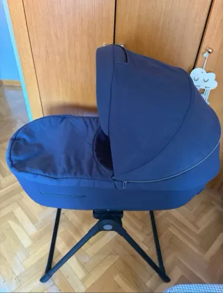 Capazo de la marca Inglesina en color azul. - Diseño moderno y funcional. - Capota ajustable. - Interior acolchado para mayor comodidad. Incluye el soporte. Tenía un descosido en la solapa que subes del todo para tapar la luz que ya está arreglado, es algo interior no se ve