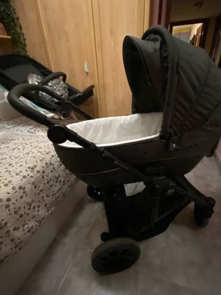 marca: Bébé Confort modelo: Loola (compatible con Matrix/Fix) tipo: Cochecito 3 en 1 (chasis, silla de paseo y portabebés) color: Beige/taupe con estructura en aluminio estado: Buen estado general, con señales normales de uso incluye: - Chasis plegable compacto con ruedas grandes - Silla de paseo acolchada con arnés de seguridad - Capazo/portabebé grupo 0+ con protección lateral - Capota - Plásticos de lluvia - Cubrepiernas y saco térmico - Adaptadores para grupo 0+ características: - Plegado ultracompacto tipo libro - Asiento reversible (mirando hacia los padres o hacia el mundo) - Respaldo reclinable y reposapi