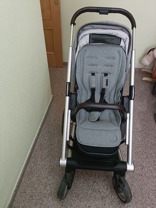 Se vende cochecito de bebé de dos piezas en color gris. - Incluye capazo y silla. - Capota acolchada. - Manillar ajustable.