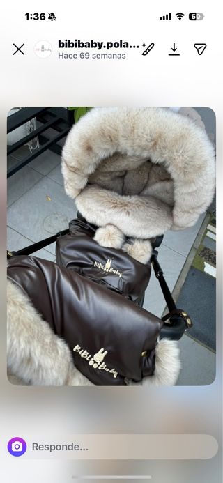 Saco de bebé de cuero marrón con detalles de pelo sintético SIRVE PARA EL CAPAZO Y PARA LA SILLA - Acabado brillante en el cuero. - Pelo sintético en el interior y borde. - Adorno con logo de BIBI&Baby. - manoplas a juego con pelo por dentro - pelo sintético para poner en la capota del capazo o de la silla es de quita y pon. Como nuevoo casi no lo e usado esta como se ve en fotos lo compre en instagram vino de Polonia , abriga muchisimo!!
