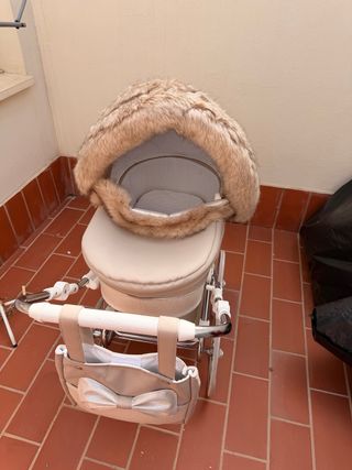Carrito Roverto Verino completo con todos sus accesorios. - Capazo - Silla de paseo - Plástico de lluvia - Mosquitera - Saco de invierno - Cambiador - Detalle de pelo en la capota