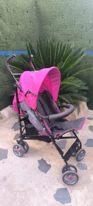 Silla de paseo ligera y cómoda, con un diseño moderno y ergonómico.Estructura metálica, funda desmontable fácilmente para lavado - Color rosa y gris. - Capota. - Arnés de seguridad. Puntos - Ruedas delanteras giratorias.