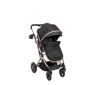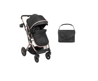 Cochecito de bebé Kikkaboo en color negro, con tan solo 5 meses de uso. - Chasis en tono dorado. - Incluye bolso a juego. - Capota extensible. - Reposapiés ajustable.