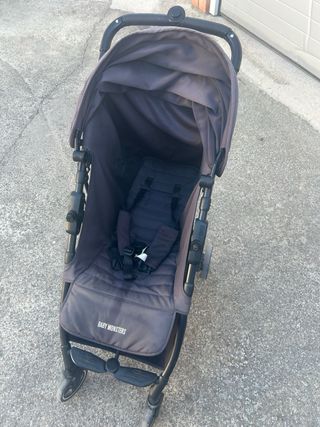 Silla de paseo portátil de la marca Baby Monsters, ideal para llevar a todas partes. - Color gris oscuro. - Capota extensible. - Arnés de seguridad. - Reposapiés. - Ruedas delanteras giratorias.