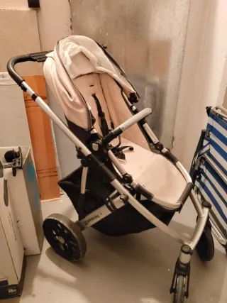Comprado en mayo 2025, lo vendo por poco uso. Comprado por 190€. -incluye su silla de coche. - Estructura metálica resistente con acabado dorado. - Capota extensible para mayor protección. - Cesta de almacenamiento inferior.