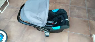 Conjunto de paseo GB Maris 2 en color verde azulado. Incluye silla de paseo, capazo y silla de coche grupo 0 con base Isofix. - Silla de paseo con capota. - Capazo con capota - Silla de coche Grupo 0+ - Base isofix para silla de coche - Plástico de lluvia capazo - Plástico de lluvia silla - Juego de ruedas extra medida reducida Buen estado. Roces típicos de uso.