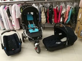 Conjunto de tres piezas: capazo, grupo 0 y silla de paseo. Chasis de aluminio ligero, con plegado telescópico. Capazo blando, plegable. Silla de paseo reversible: se puede colocar en sentido de la marcha o viendo hacia los padres. Respaldo ergonómico, reclinable en varias posiciones hasta llegar a la horizontal. Ruedas delanteras giratorias con bloqueo opcional de dirección. Freno trasero centralizado para ambas ruedas. Capota regulable, y cómoda cesta portaobjetos. Fundas desenfundables y lavables a máquina. Perfecto estado. Vendo por no usar