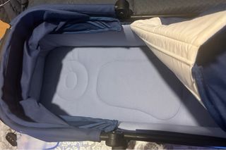 capazo de jane muum ( sin estructura de carro incluye colchon capota y barra de agarre para transportarlo y es de color azul marino ) solo tiene 5 meses de uso