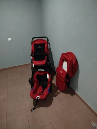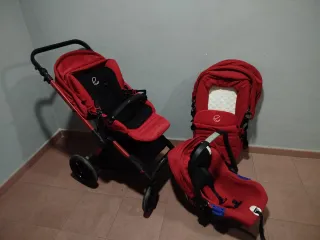Conjunto de cochecito de bebé de 3 piezas en color rojo. Se entrega tal cual sale en la foto y con instrucciones originales. - Incluye capazo y silla de paseo. - Chasis ligero y maniobrable. - Capota extensible. No se envía. Coste de compra 550€ Se puede venir a ver sin compromiso. Zona: Getafe Sector III-Buenavista