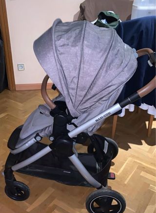 Carrito de bebé Maxi-Cosi en color gris. Diseño moderno y funcional. - Capota amplia. - Arnés de seguridad. - Reposapiés. - Cesta de almacenamiento inferior. - Viene con sus fundas de lluvia Los laterales están un poco rallados y el brazo tiene rota una pestaña. Por eso este precio. Ruedas, mecanismos y telas impecables