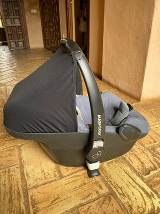 Silla de coche para bebé de la marca Maxi-Cosi, en color negro. - Asa de transporte. - Arnés de seguridad de 3 puntos. - Capota. - Reductor para recién nacidos.
