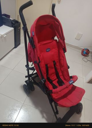 Carro de paseo Chicco en color rojo. Es ligero y fácil de plegar. - Marca: Chicco - Color: Rojo - Incluye arnés de seguridad - Barra frontal - Capota - Ruedas dobles