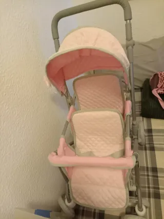 Cochecito de bebé en color rosa, ideal para paseos. - Capota ajustable. - Cesta de almacenamiento inferior. - Ruedas todoterreno. Doy los dos coches q están en la foto se usa para el auto también el de auto solo se uso 2 meses Barcelona centro , solo pago contraentrega