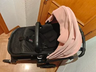 Carro Bugaboo Fox 5 en color negro y Rosa. - Chasis robusto. - Asiento ergonómico. - Capota extensible Rosa. - Ruedas todoterreno. Todo perfecto excepto el manillar que como es de un material algo frágil, pues a pesar del poco uso que tiene el carro se ha desgastado un poco tal y como se aprecia en las fotos. Pero con una funda no se nota. Se vende por no usar. Todos los accesorios son los que venían con el carro y originales de Bugaboo.