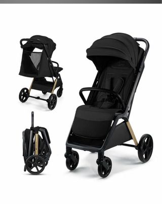 Silla de paseo negra, compacta se pliega con una mano .Ideal para viajes y el día a día. - Diseño moderno con detalles en dorado. - Capota extensible, impermeable y proteccion solar - Cesta de almacenamiento inferior. - Ruedas delanteras giratorias. Muy poco uso comprada en octubre del 2025 lo podéis apreciar en la factura