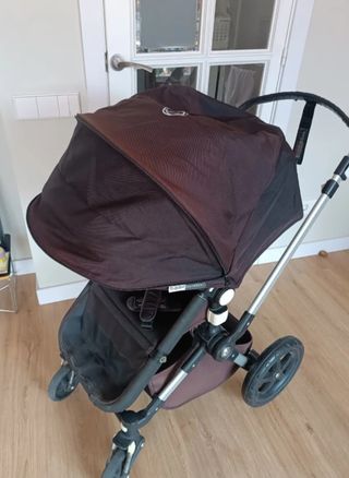 Capota extensible para Bugaboo Camaleón, Protege del sol y el viento. Color negro, un poco desgastada por el sol.